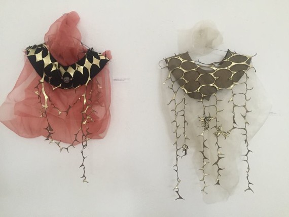 With some works hanging on framed canvasses and improvised mannequins alongside loose hanging cloths, they evoke and radiate an atmosphere of active calm as exquisite designs majestically confront the viewer in all directions.