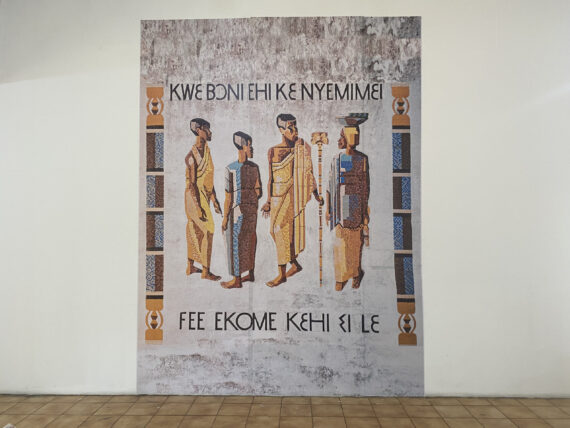 Remembered for his realistic and narrative scenes of idealized African life, which he depicted in wall paintings, sculptures and mosaics, his pieces on display equally reveal him as a masterful technician, who vividly promoted community life in Ghana.