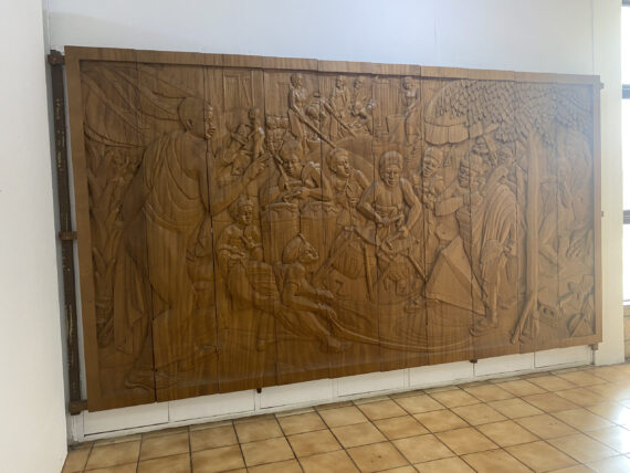 Antobam’s works include wooden reliefs on the façade of the old parliament building in Accra (1950), murals on the United Nations building in Geneva (Switzerland 1950s) and a series of woodcuts titled “The Life and Customs of the African People” (1959 - 61).