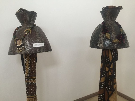 With some works hanging on framed canvasses and improvised mannequins alongside loose hanging cloths, they evoke and radiate an atmosphere of active calm as exquisite designs majestically confront the viewer in all directions.