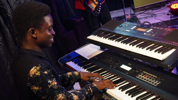 Der Flötenvirtuose, der in einem farbenfrohen Kostüm auf der Bühne stand, trug eine außergewöhnliche Verbindung von Jazz und traditionellen wie zeitgenössischen ghanaischen Rhythmen vor, die in eindrucksvoller Weise miteinander harmonierten und Neues schufen.